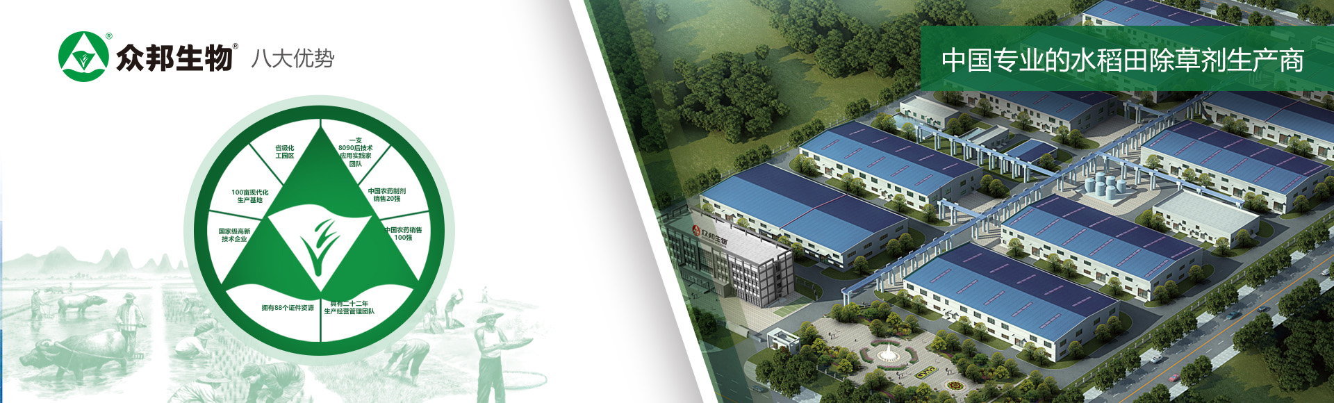安徽眾邦生物工程有限公司成立于1997年12月。公司以新型生物農(nóng)藥為主導(dǎo),兼顧生化復(fù)配和化學(xué)復(fù)配劑型農(nóng)藥研發(fā)、生產(chǎn)與銷售。